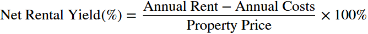 Method 1: Gross Rental Yield (%) = Annual Rent divide by Property Price X 100%